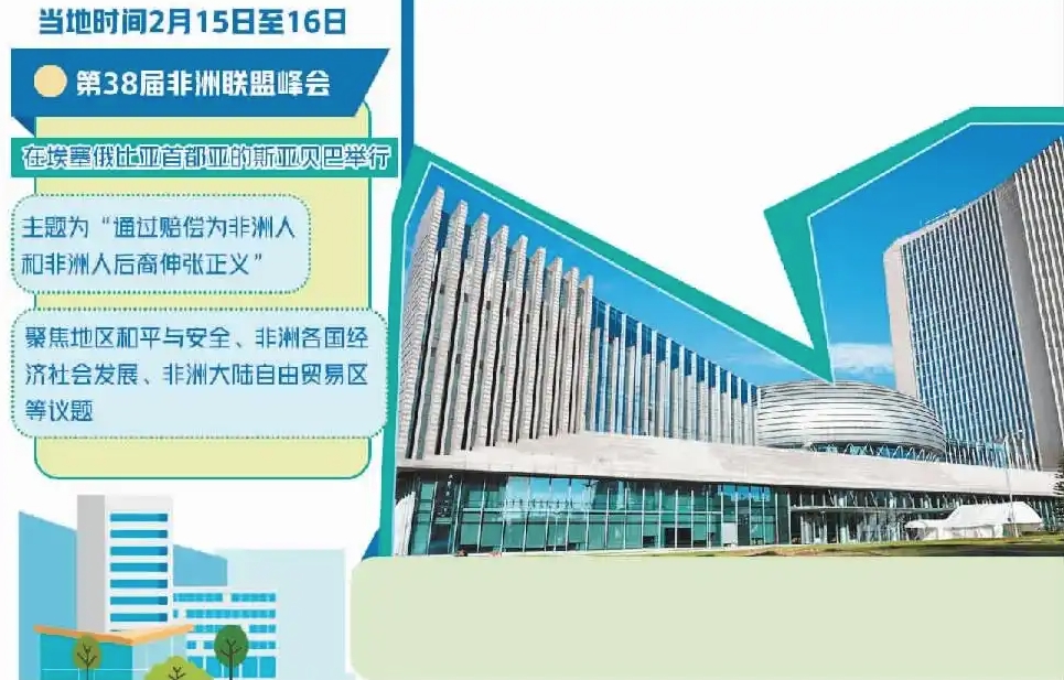 当地时间2月15日至16日,第38届非洲联盟峰会在非盟总部所在地埃塞俄比亚首都亚的斯亚贝巴举行。本届峰会的主题为“通过赔偿为非洲人和非洲人后裔伸张正义”,与会非盟成员国领导人共商非洲政治和社会经济等领域一系列重大事项,以促进和提高非洲各国经济社会发展及人民福祉。