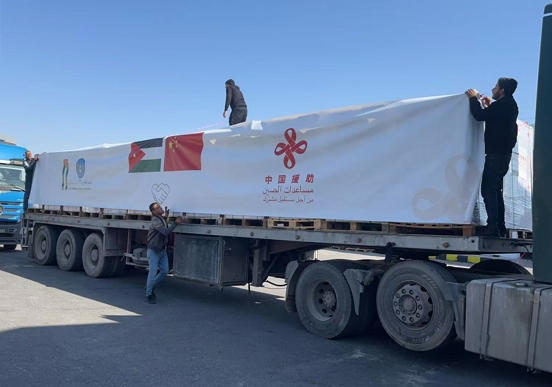 中国援加沙地带人道主义物资启运仪式在约旦举行