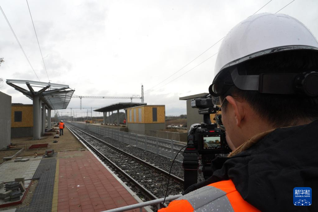 11月下旬的匈牙利天气寒冷,但首都布达佩斯以南20多公里的匈塞铁路匈牙利段施工现场依然热火朝天。10余名匈牙利工人冒雨进行站台雨棚施工,驾驶升降车进行接触网的挂线工作。