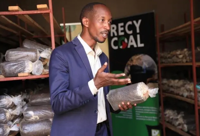 在卢旺达首都基加利的卡布耶地区,一家食用菌培育工坊正有序运转。工人们将菌草粉、棉籽壳和水按比例倒入搅拌机,而后将混合物送入装袋机,制成一个个食用菌培养袋。