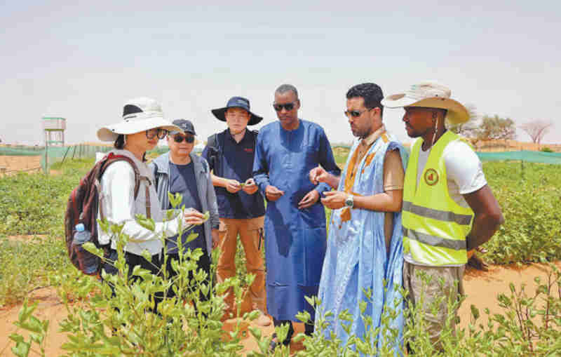从毛里塔尼亚首都努瓦克肖特出发,驱车沿N3国道向东行驶约一个半小时后,戈壁荒漠中出现一片生机盎然的绿色园区。这里是中毛共建的中非绿色技术公园项目。双方在防治荒漠化、改善民生、培养技术人才等方面积极探索,助力毛里塔尼亚应对自然环境和气候变化挑战,为非洲绿色发展提供新示范。