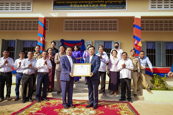 驻柬埔寨大使王文天出席菩萨省瓦宁小学教学楼启用仪式