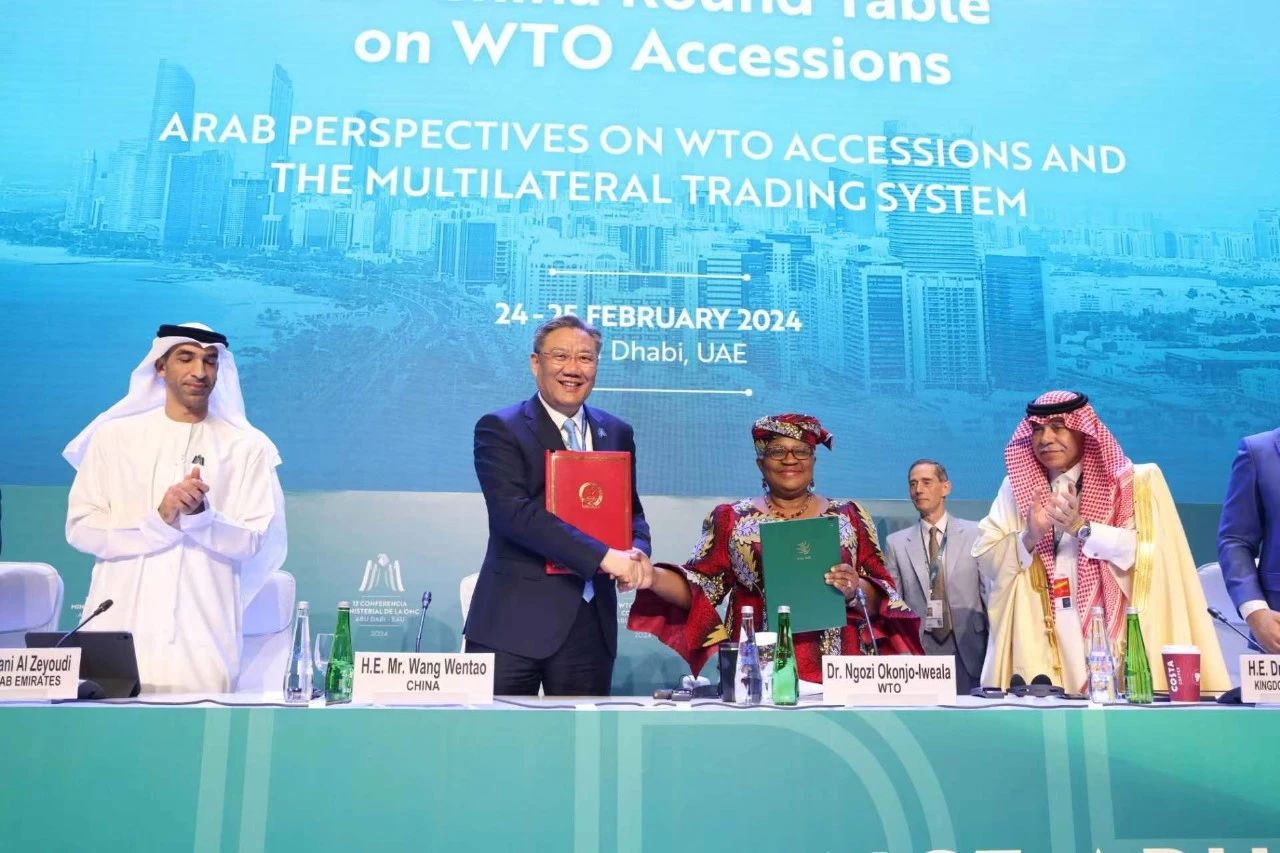 2月25日,世贸组织第十二届“中国项目”圆桌会高层论坛在阿联酋阿布扎比举行。商务部部长王文涛出席高层论坛开幕式并致辞。世贸组织总干事伊维拉,阿联酋、沙特、摩洛哥等世贸组织成员部长发言。会议由世贸组织副总干事张向晨主持。商务部副部长李飞和中国常驻世贸组织代表团大使李成钢参加。