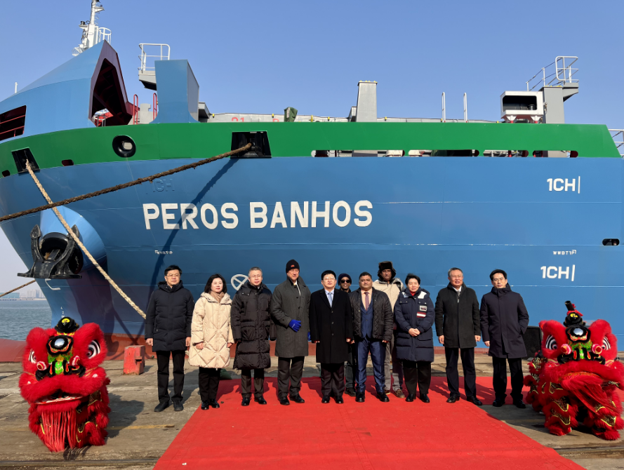 12月19日上午,由山东省黄海造船有限公司建造的毛里求斯多用途船“佩洛斯巴纽斯”轮交付仪式在山东威海荣成成功举办。外交部非洲司参赞唐中东、山东省委外办副主任李红、威海市副市长赵宝钢,毛里求斯驻华大使王纯万等嘉宾出席仪式并致辞。