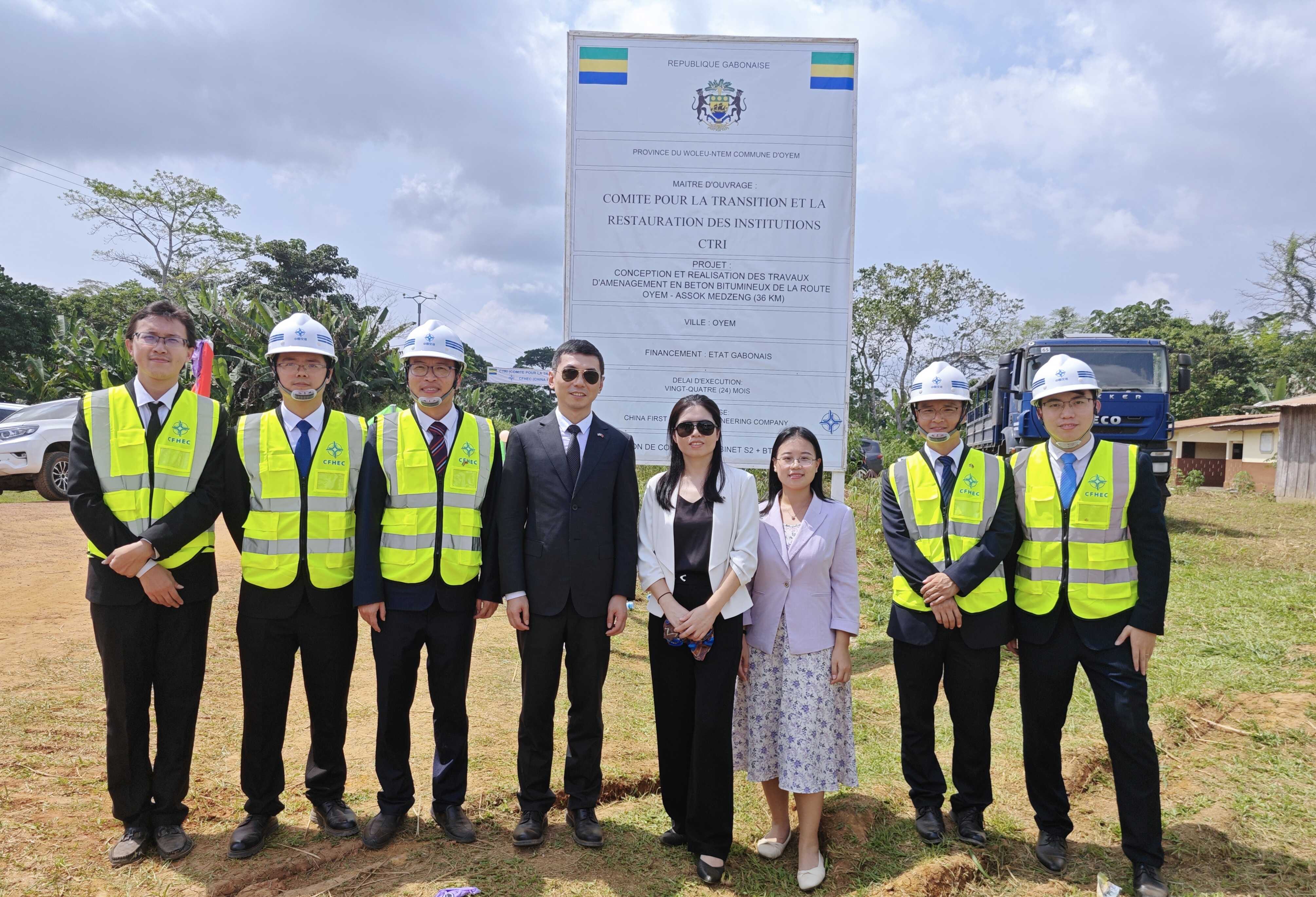 加蓬过渡总统恩圭马出席中资企业奥耶姆多条道路整治工程及沃勒河桥梁项目开工仪式