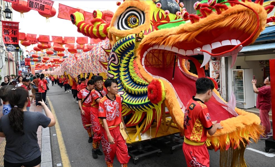 日前,俄罗斯莫斯科市中心的卡梅尔格尔巷灯火璀璨,人头攒动。伴着欢腾热闹的鼓声,一条金红相间的祥龙在人群中穿行,现场的掌声和呐喊声此起彼伏。这是莫斯科市春节系列庆祝活动之一。