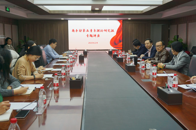 2023年12月21日,交流中心举办“搭建国际减贫合作平台,推动构建人类命运共同体”专题讲座活动,商务部第五青年理论研究组外资司等成员单位及财务司、国际司20余名同志参加。