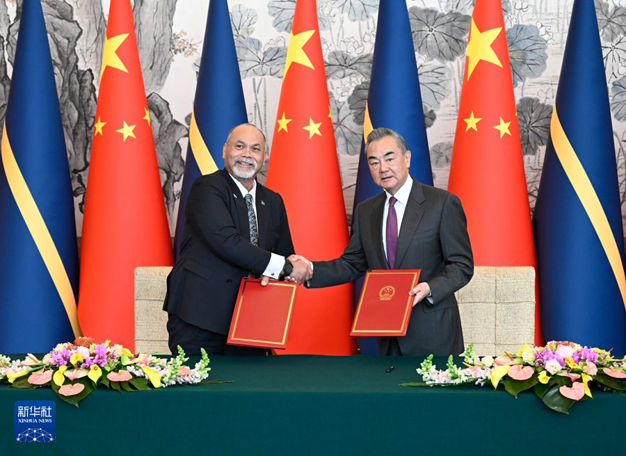 1月24日,中共中央政治局委员、外交部长王毅在北京同瑙鲁外长安格明举行会谈并签署《中华人民共和国和瑙鲁共和国关于恢复外交关系的联合公报》。