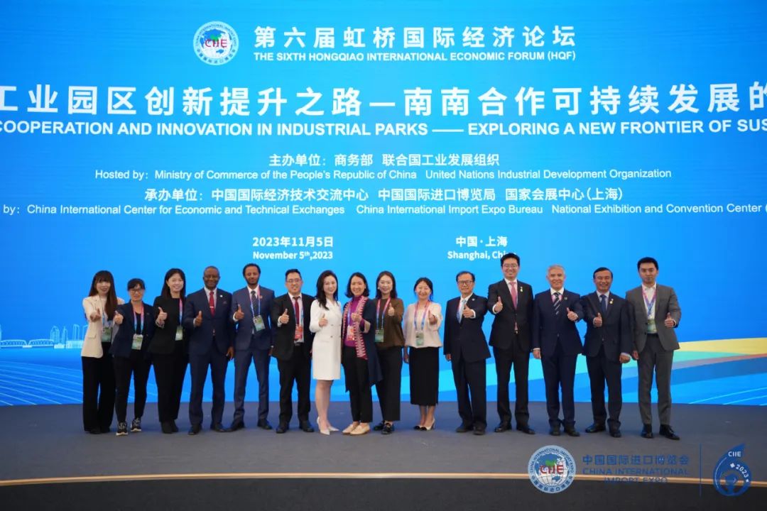 由中国商务部和联合国工发组织主办,中国国际经济技术交流中心、中国国际进口博览局、国家会展中心(上海)联合承办的第六届虹桥国际经济论坛“面向现代化的工业园区创新提升之路——南南合作可持续发展的新突破”分论坛于2023年11月5日下午在上海举行,该论坛旨在促进政府间合作、区域一体化、贸易畅通、资金融通以及利益攸关方建立合作伙伴关系,助力落实2030年可持续发展议程。