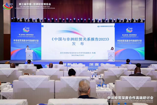 2023年6月29日,在第三届中国-非洲经贸博览会“中非经贸深度合作高端研讨会”上,商务部研究院发布了《中国与非洲经贸关系报告 2023》。