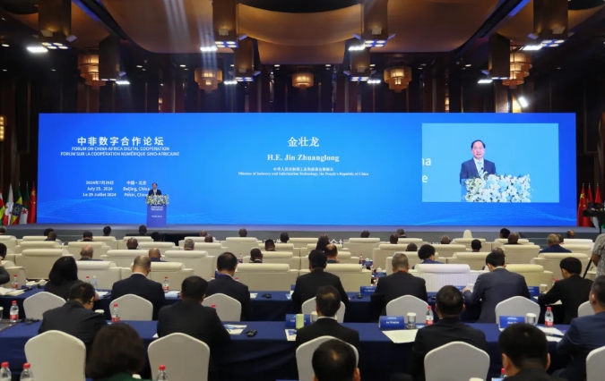 7月29日,中非数字合作论坛在北京召开,中国工业和信息化部部长金壮龙,塞内加尔新闻、电信和数字经济部长阿利翁内·萨勒,刚果(布)邮政、电信和数字经济部长莱昂·伊邦博出席论坛开幕式并致辞。中国工业和信息化部副部长张云明主持论坛开幕式并作闭幕致辞。