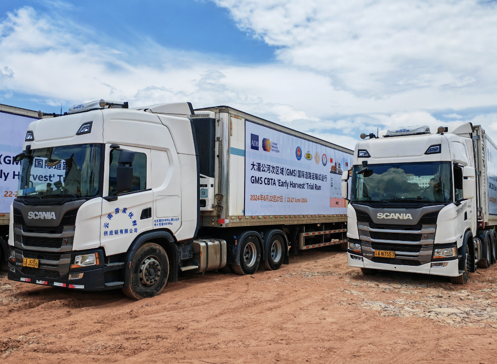大湄公河次区域国际道路运输试运行活动22日在云南昆明发车,由5辆货车和2辆客车组成的车队从昆明出发,将通过磨憨公路口岸出境,途经老挝、泰国,最终抵达柬埔寨首都金边。