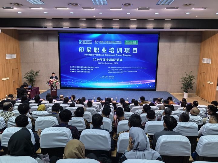 5月8日,印尼职业培训项目2024年度培训班在苏州开班。印度尼西亚海洋与投资统筹部副部长拉赫马特·凯穆丁,国家发展改革委国际司、国家发展改革委国际合作中心、北京陈江和公益基金会、苏州工业园区职业技术学院有关负责人出席开班式,来自印尼的91位学员参加本期培训。