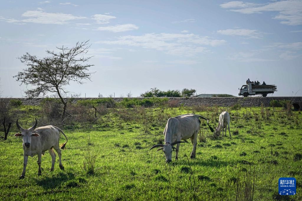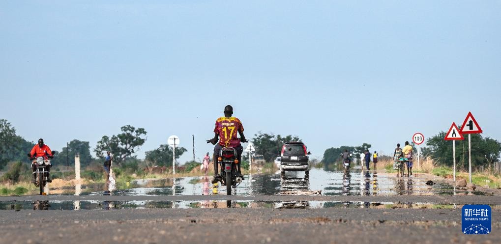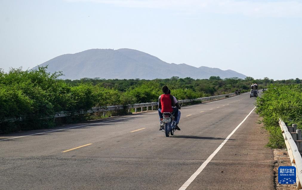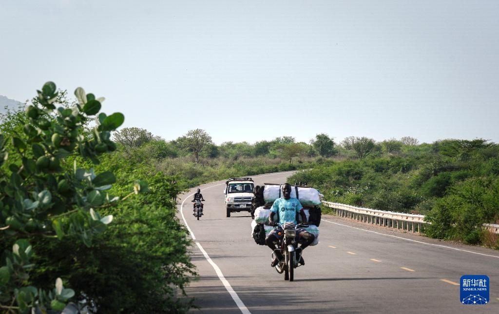 4月11日,在南苏丹首都朱巴,车辆行驶在朱巴-伦拜克公路项目的朱巴-特里克卡路段上。