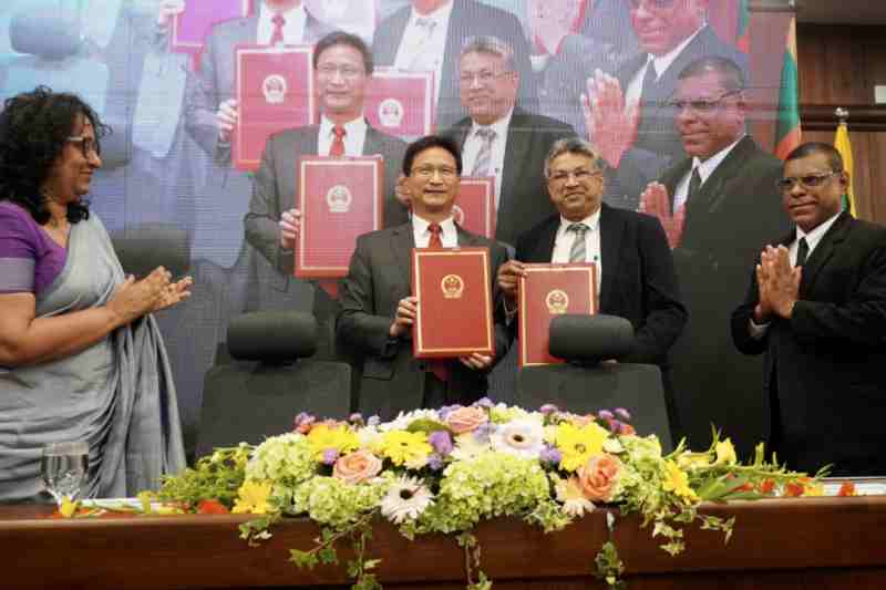 2月5日,斯里兰卡总理阿马拉苏里亚与我驻斯大使戚振宏共同出席援斯高法大楼全面维修项目交接仪式,戚振宏大使与斯司法部长哈沙纳·纳那亚克拉签署交接证书。斯首席大法官、总检察长、上诉法院院长、警察总长,我驻斯使馆经商处唐彦棣参赞出席活动。