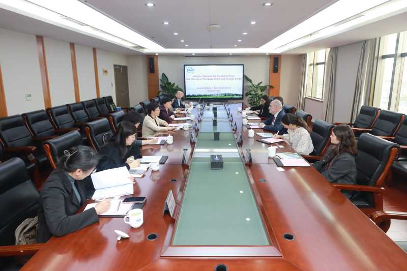 3月27日,西班牙加泰罗尼亚自治区欧盟与对外事务部长豪梅・杜奇(Jaume Duch Guillot)率团到访我院,院长、党委副书记朱艳主持接待,党委委员、副院长王冉参加接待。