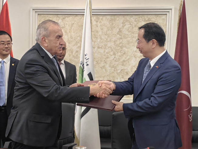 10月14日,我驻约旦大使陈传东会见约旦公共工程与住房大臣马希尔·哈姆迪·艾布萨曼,双方签署了援约旦萨尔特公路升级改造项目政府间移交证书。