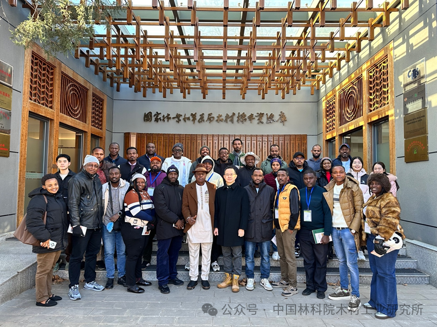 12 月8 日,国家林业和草原局木材标本资源库主库——中国林科院木材标本馆迎来到华参加“非洲国家特色植物可持续利用技术培训班”的28 位学员,分别来自尼日利亚、埃塞俄比亚、南非、坦桑尼亚和塞拉利昂等5个国家,涵盖了植物保护、林业领域的政府部门官员、专家及学者等多元背景。此次访问活动是培训班的重要环节之一,旨在加强中非之间在林木资源保护与可持续利用方面的交流与合作。