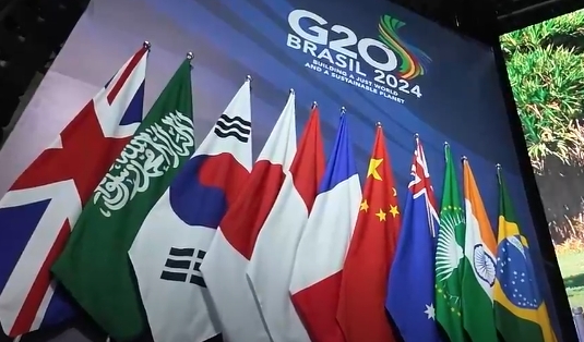 当地时间11月18日上午,国家主席习近平在巴西里约热内卢出席二十国集团领导人第十九次峰会。在峰会第一阶段围绕“抗击饥饿与贫困”议题讨论时,习近平发表题为《建设一个共同发展的公正世界》的重要讲话