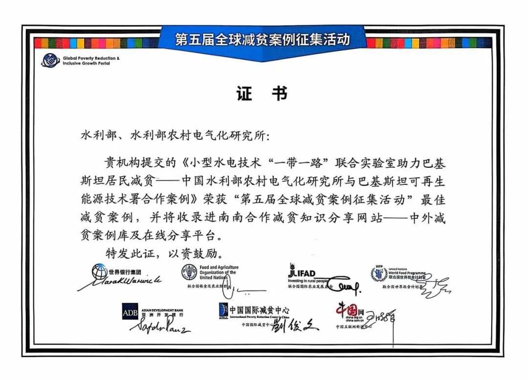《小型水电技术“一带一路”联合实验室助力巴基斯坦居民减贫》荣获第五届全球减贫最佳案例
