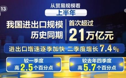 上半年中国国内生产总值(GDP)61.7万亿元,同比增长5.0%,运行总体平稳、稳中有进,新动能加快成长,高质量发展取得新进展。