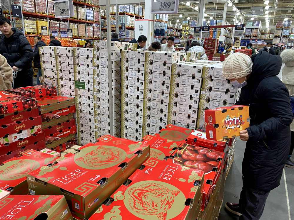 春节将至,车厘子进入销售旺季。在京东、淘宝、美团等线上平台上,各种型号及包装的“智利原箱进口车厘子”正在热卖。在沃尔玛、山姆会员店等大型商超,一箱箱火红的智利车厘子,被前来购买年货的顾客放进购物车。