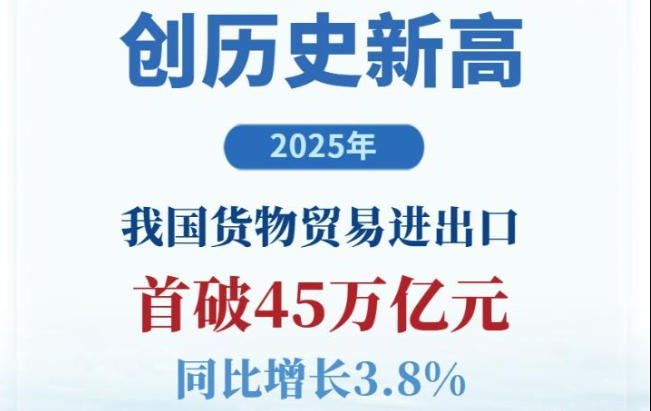 2025年我国货物贸易进出口突破45万亿元 连续9年保持增长